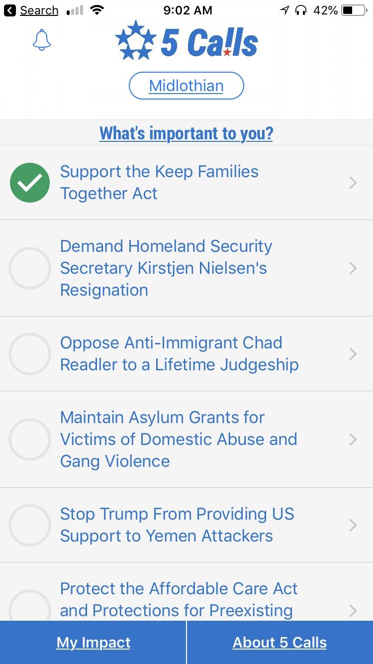 Calling has a greater impact than emailing or posting on social media. But calling can be intimidating, it was for me, until I discovered the 5 calls app. It is so easy to use that I had to share. This issue is so important and every little bit counts. Here’s how the app streamlines the process: