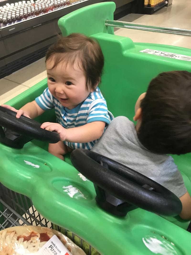 Zoe has had a busy month. She has been Max’s kitchen assistant, wagon helper, lunch helper, train watcher, pool shark, grocery helper, super hero side kick and line leader in Max’s pretend class. These are all blank titles because he actually just wants Zoe to sit there and watch him play, clapping when appropriate (of course). But we love that he wants to include her, and we love it even more than she wants to be included.